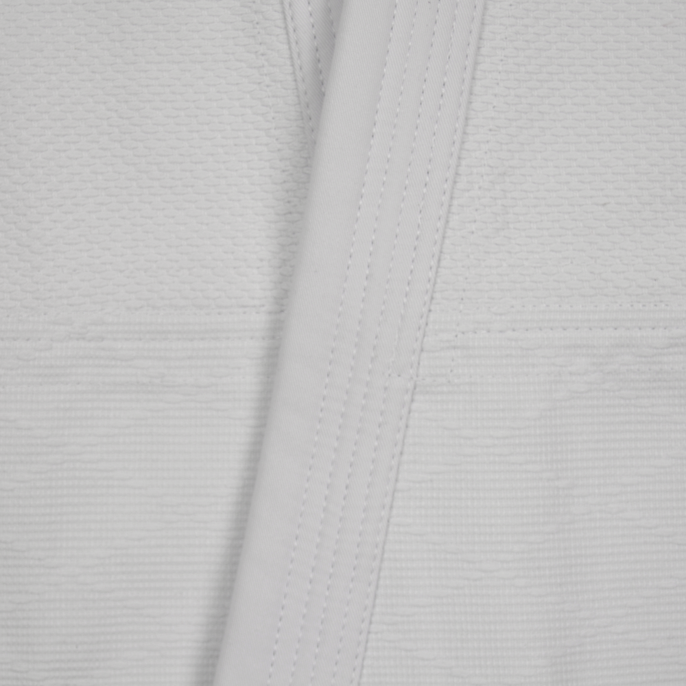 Upper Fabric - Pure white 500g traditional Sashiko Ori cotton.  The Sashiko fabric reaches 20% further down the Gi when compared to most Judo uniforms which gives the Gi a great look especially when worn with a Hakama.