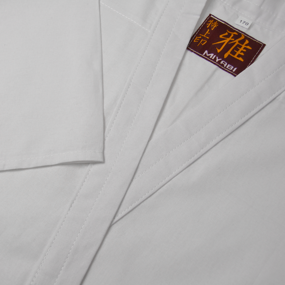 The matched 100% cotton Shitagi completes the set, ensuring comfort against the skin in practice, creating the classic layered look of traditional clothing and prolonging the lifetime of the Iaigi by becoming the primary component for washing.