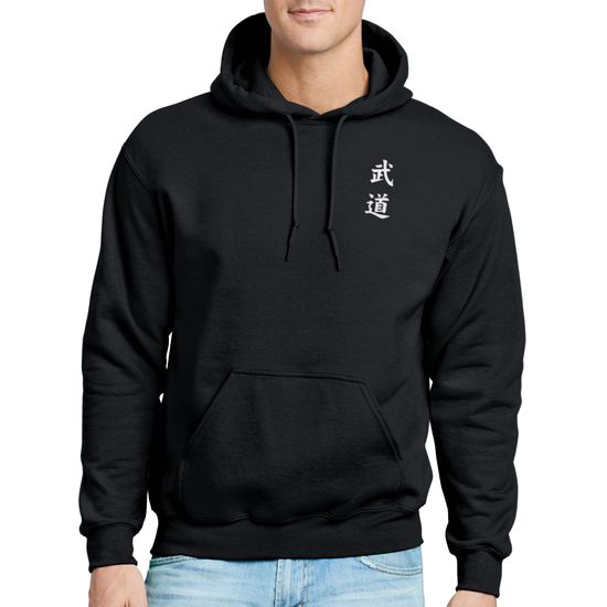 Heavyweight hooded sweatshirts with embroidered Kanji designs.
