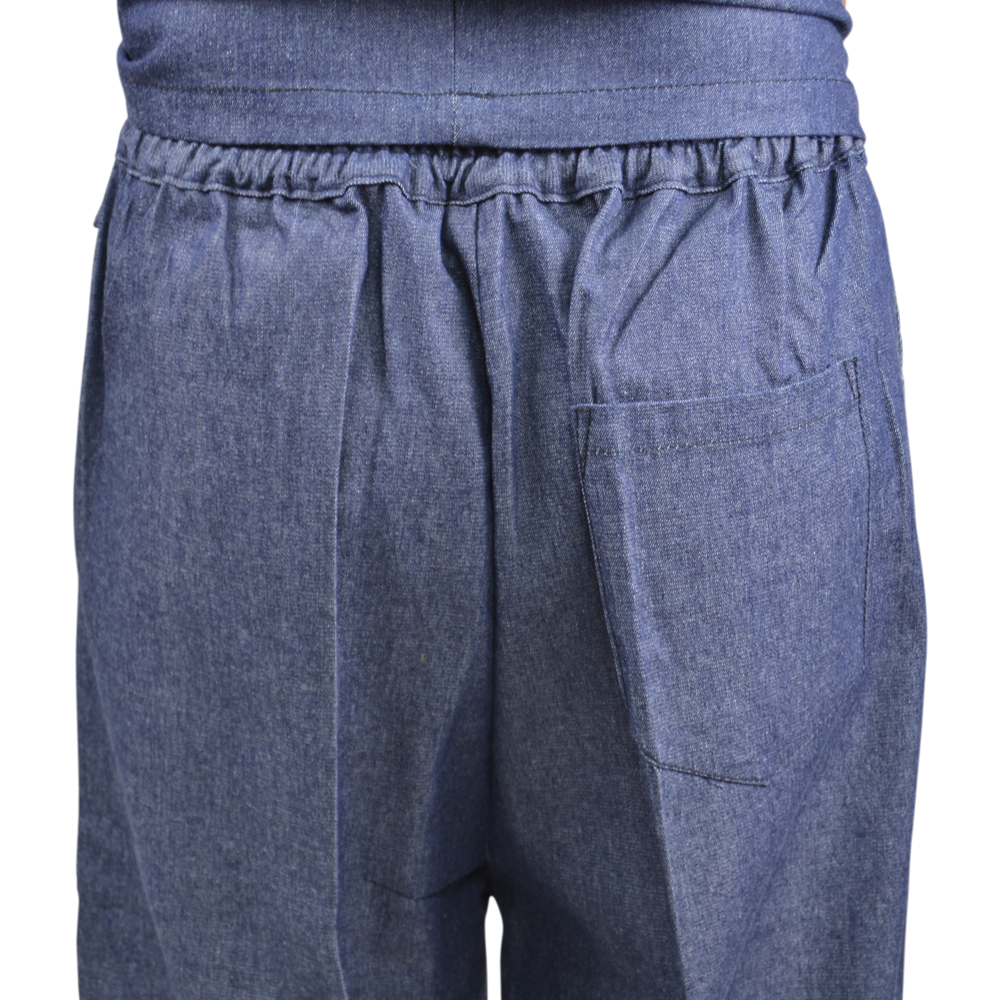 100% cotton, in a soft, light-weight denim material which balances comfort with durability. This Samue set consists of a comfortable, wrap over style jacket with internal fastening ties and drawstring waist trousers complete with pockets and fold over ankle ties.