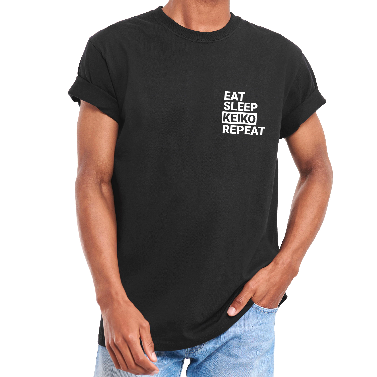 High quality heavy weave t-shirts in 100% cotton fabric with "Eat Sleep Keiko Repeat" Design.