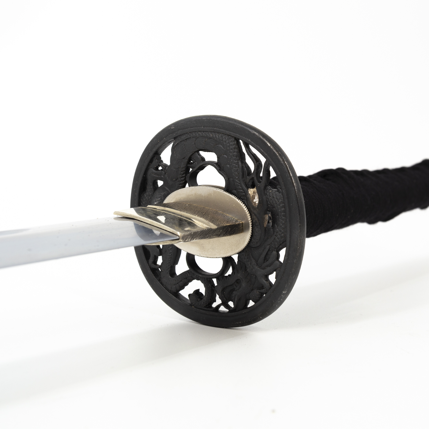 Black Silk Tsuka Ito - Expertly wrapped for a secure, comfortable grip that ensures full control during extended practice.